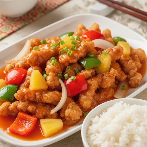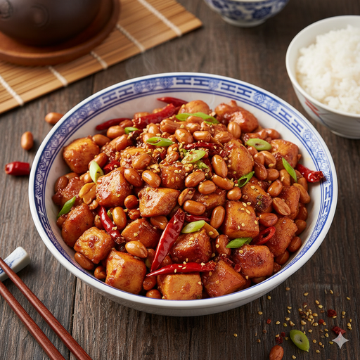Potongan ayam tumis dengan kacang tanah, cabai kering, dan saus spesial Szechuan.
